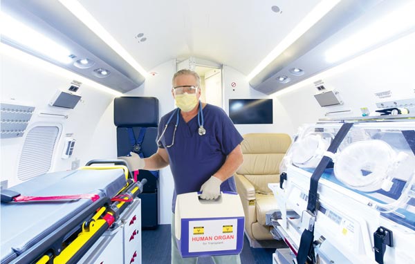 The predominant role of an Air Ambulance is to evacuate patients and transport them rapidly to either a temporary treatment centre or a hospital. An Air Ambulance requires medical equipment for stabilising patients’ and space for medics & paramedics to perform their duties. Other roles for an Air Ambulance include the transportation of organs, blood, medical staff and medical supplies.